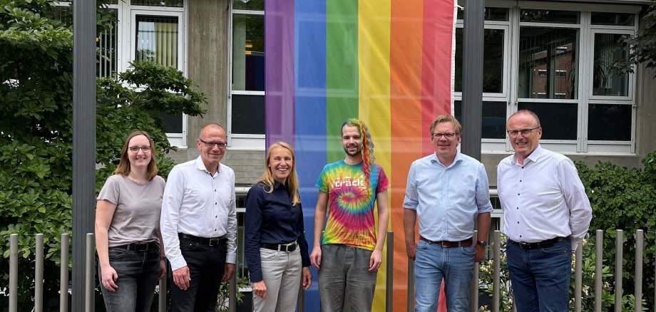 Regenbogenflagge vor Emsdettener Rathaus gehisst