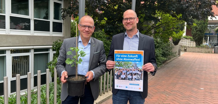 „Frieden ist die Grundlage unseres Zusammenlebens – lokal wie global. Gerade in Zeiten internationaler Spannungen ist es unsere Pflicht, ihn zu schützen. Vor 80 Jahren wurden Hiroshima und Nagasaki durch Atombomben zerstört. Als Mayors for Peace sagen wir klar: Atomwaffen dürfen nie wieder eingesetzt werden. Wir fordern Abrüstung statt Aufrüstung – für eine sichere Zukunft der Menschheit. Umso mehr erfüllt es mich mit Stolz, dass aus den im letzten Jahr aus Hiroshima erhaltenen Ginkgosamen inzwischen ein kleines Bäumchen gewachsen ist – ein lebendiges Zeichen der Hoffnung und des Friedens“, betont Emsdettens Bürgermeister Oliver Kellner.