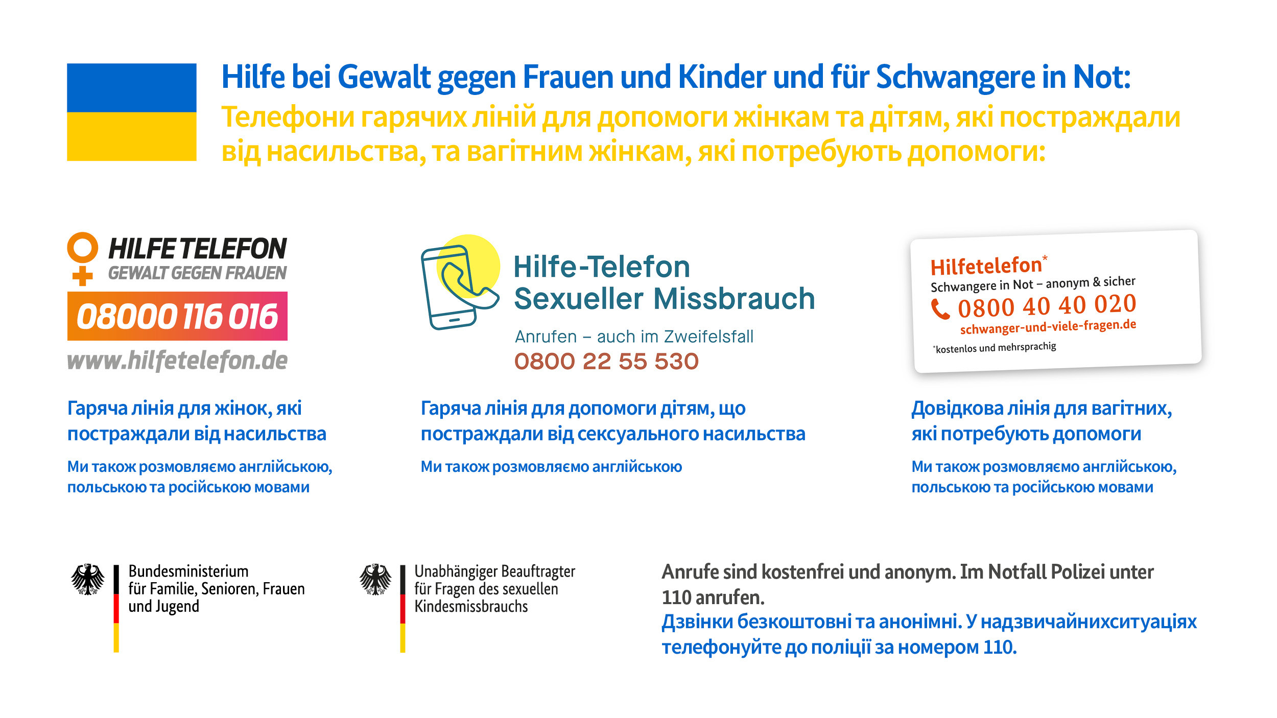 Hilfe bei Gewalt gegen Frauen und Kinder und für Schwangere in Not