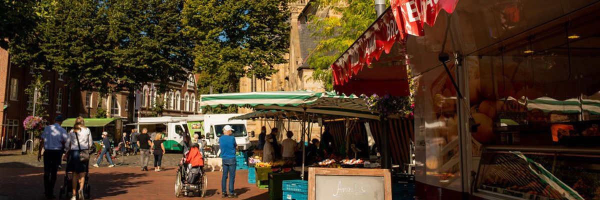 In Emsdetten gibt es jeden Mittwoch und Samstag einen Wochenmarkt mit einem breit gefächerten Sortiment an regionalen Produkten. Der Wochenmarkt findet jeweils