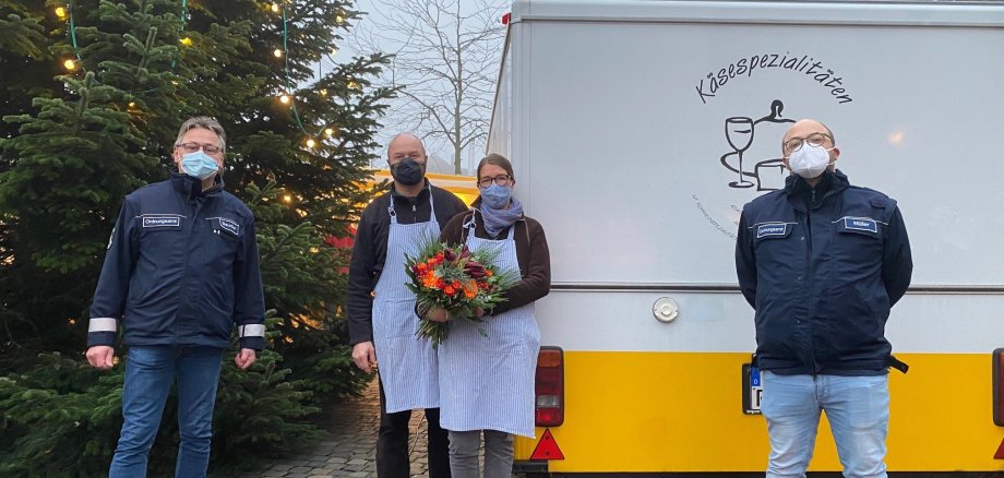 Auf dem Bild v.l.n.r.: Marktmeister Franz-Josef Beuntker, Matthias Heilen, Rita Heilen und Marktmeister Sascha Müller.