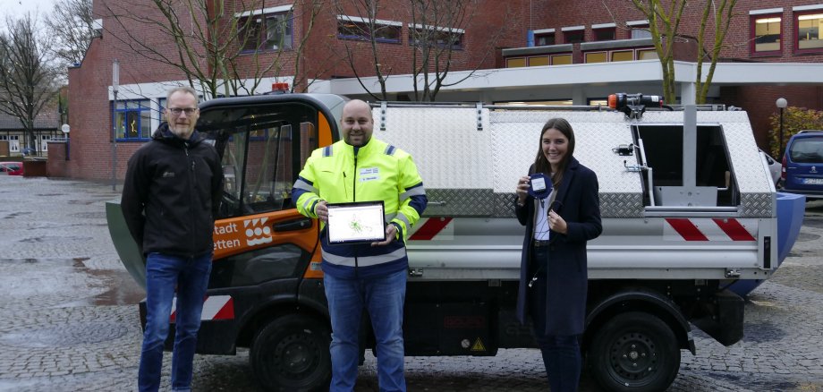 Auf dem Bild v.l.n.r.: Manfred Linnenbäumer (Informationstechnologie der Stadt Emsdetten), Sven Mendelin (Teamleiter Baubetriebshof Stadt Emsdetten) sowie Melanie Griese (ServiceCenter Wirtschaft der Stadt Emsdetten)