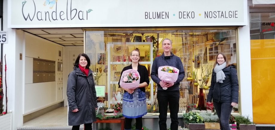 Auf dem Foto v.l.n.r.: Nicole Mahlmann (ServiceCenter Innenstadt der Stadt Emsdetten), Kerstin Löbbel und Michael Schräder (Wandelbar), Michelle Dresemann (ServiceCenter Innenstadt der Stadt Emsdetten)