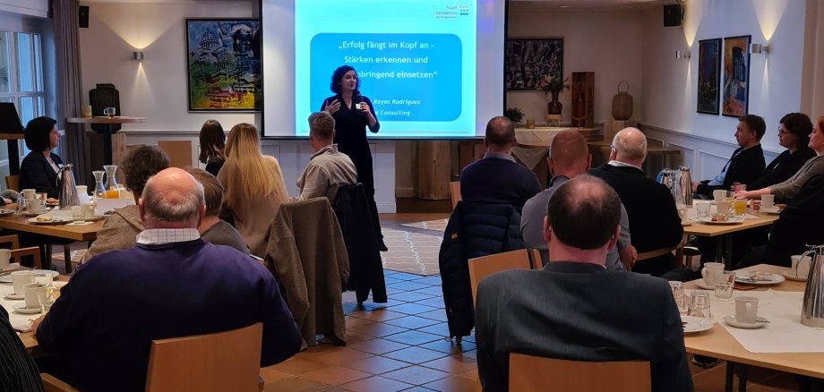 In einem mitreißenden Impulsvortrag stellte Jessica Reyes Rodriguez, Inhaberin des Emsdettener Unternehmens IMAGE CONSULTING, dann ihre persönlichen Erfahrungen für ein erfolgreiches unternehmerisches Dasein vor. Voller Energie und Enthusiasmus zeigte sie mit vielen Beispielen auf, wie wichtig es ist, die eigenen Stärken zu erkennen und diese dann gewinnbringend einzusetzen. Dabei spielen laut Reyes Rodriguez die Kundenbindung und der Einsatz von kommunikativen Maßnahmen in Form von Social Media eine elementare Rolle für erfolgreiches Handeln.