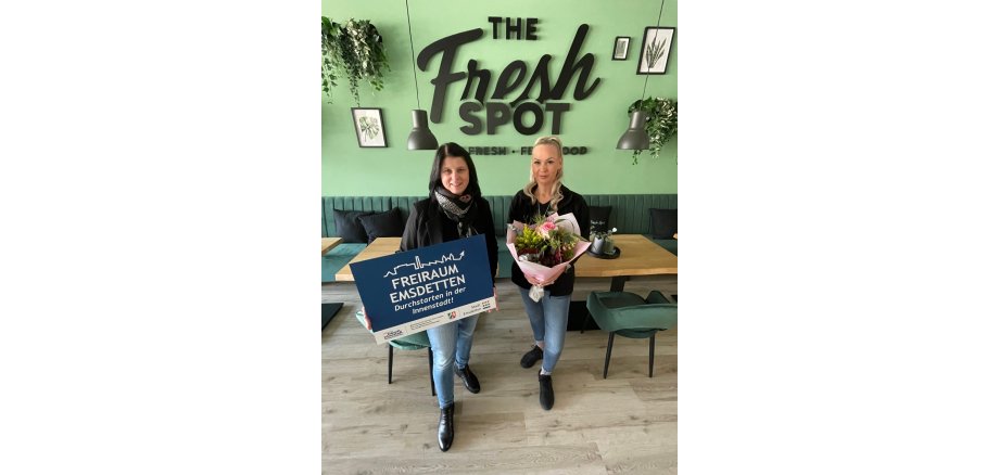 „The Fresh Spot“ profitiert von einer Förderung aus dem Förderprogramm "Zukunftsfähige Innenstädte und Ortszentren Nordrhein-Westfalen" (ZIO), das vom ServiceCenter Innenstadt der Stadt Emsdetten betreut wird. Nähere Informationen zum Förderprogramm sind unter www.emsdetten.de/freiraum erhältlich oder können bei Michelle Dresemann und Nicole Mahlmann vom ServiceCenter Innenstadt (Tel. 02572 922-262 oder -282, innenstadt@emsdetten.de) angefragt werden.
