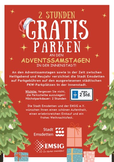 Kostenfreies Parken an Adventssamstagen in der Emsdettener Innenstadt