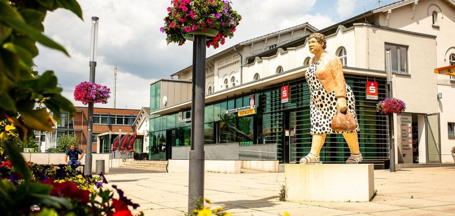 Nun kehrt sie auf den Hengeloplatz zurück und weist Vorbeilaufenden wieder den Weg in die Innenstadt.