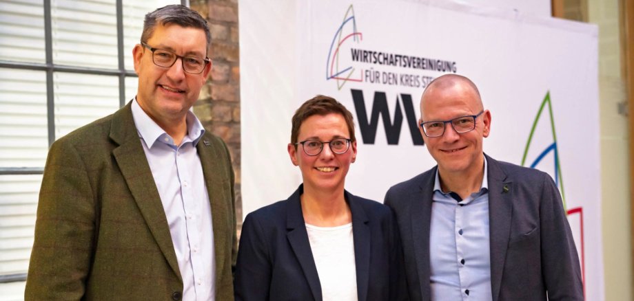 Auf dem Bild v.l.n.r: Heiner Hoffschroer (Geschäftsführer der Wirtschaftsvereinigung für den Kreis Steinfurt e.V.), Jutta Austrup (Kämmerin der Stadt Emsdetten) und Bürgermeister Oliver Kellner