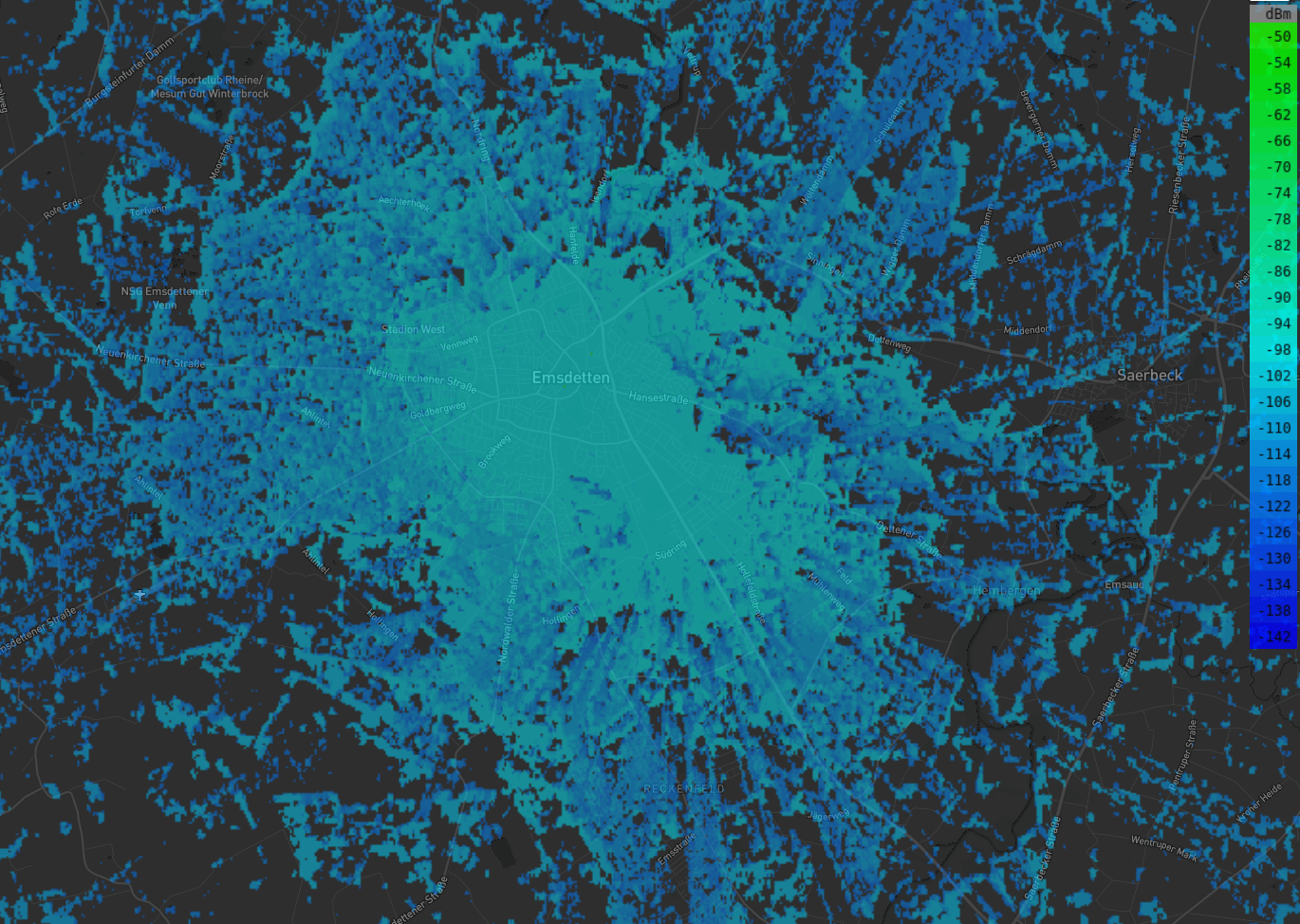Die Technologie bietet damit Anwendungsfelder in den unterschiedlichsten Bereichen. Der Kreis Steinfurt möchte in Zusammenarbeit mit den örtlichen Stadtwerken ein einheitliches LoRaWAN-Funknetz im gesamten Kreisgebiet aufbauen. Die Stadtwerke haben bereits drei Funkmasten in Emsdetten installiert. Diese Gateways sind in dem TheThingsNetwork registriert und somit für alle Bürgerinnen und Bürger nutzbar. Für Geschäftskunden werden hochverfügbare Systeme bereitgestellt, sodass diese ebenfalls einen hohen Nutzen aus der LoRaWAN-Infrastruktur ziehen können.