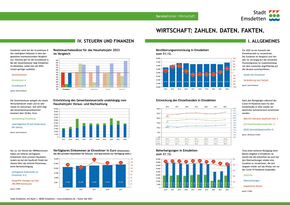 Seit 2020 beteiligt sich die Stadt Emsdetten an der Untersuchung "Vitale Innenstädte NRW" von der IFH Köln. Im 2-Jahres-Turnus werden in teilnehmenden Städten Passantinnen und Passanten der Innenstadt interviewt. Neben Einschätzungen zu Gegebenheiten und dem lokalen, individuellen Besuchsverhalten wird auf Schulnotenbasis untersucht, wie Besuchende die jeweilige Innenstadt bewerten.