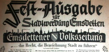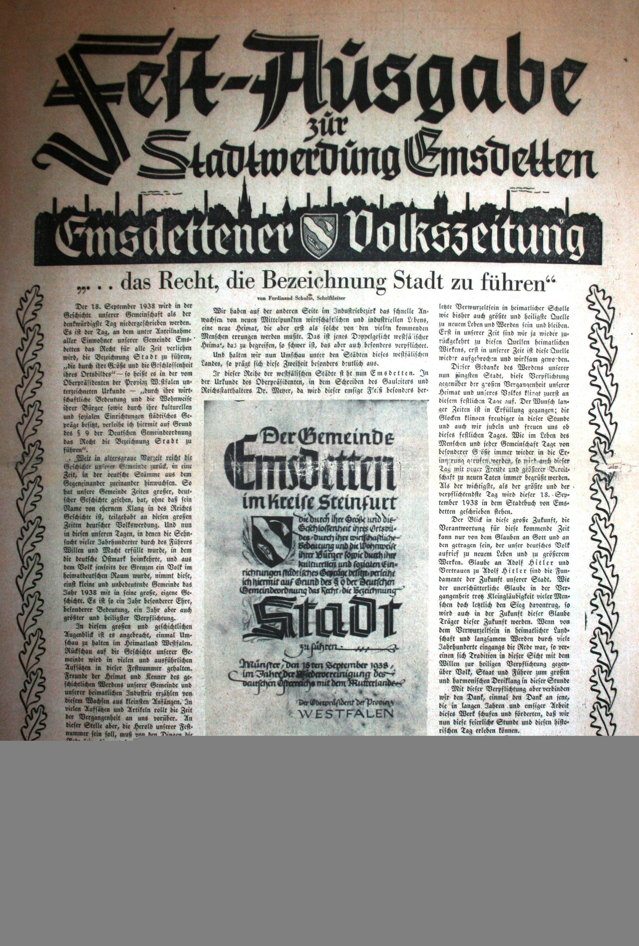 Titelblatt der Emsdettener Volkszeitung zur Stadtwerdung Emsdettens 1938
