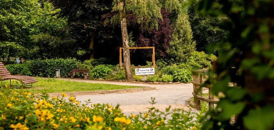 Der Emsdettener Stadtpark liegt an der Blumenstraße, am Rande der Stadt in einem kleinen Waldstück.