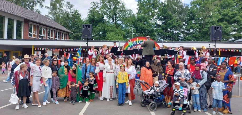 Zunächst begrüßte Bürgermeister Oliver Kellner die vielen kleinen und großen Gäste aus Emsdetten und aller Welt, denen er ein friedliches und fröhliches Internationales Kinderfest wünschte. Schulleiterin Eva Winter kündigte ein buntes Bühnenprogramm mit Tänzerinnen und Tänzern von YouRDance aus Sinningen und ihren Schülerinnen und Schülern an, die Internationales sangen und tanzten.